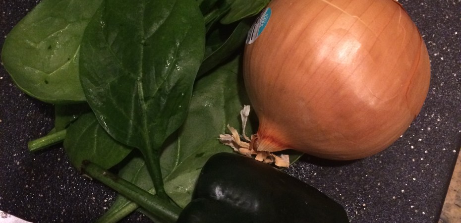 Finely chop onion, Anaheim peppers, spinach